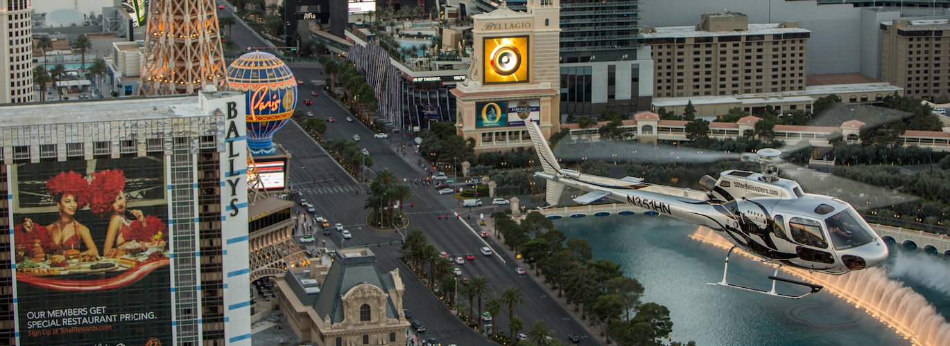 Experience the dazzling lights of the Las Vegas Strip like never before. Soar above the iconic hotels, casinos, and landmarks as millions of lights illuminate the desert night. See the Bellagio fountains, the Luxor beam, the High Roller, and the entire Strip in all its neon glory.