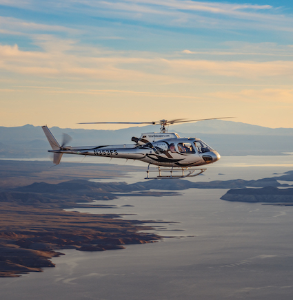Our Sunset departure time allows you to enjoy the views as the sun begins to set and take pictures before your return flight, which concludes over the fabulous Las Vegas Skyline, as you fly past the Stratosphere Tower, Resort World, Caesars Palace, Bellagio, City Center, T-Mobile Arena, Luxor, Mandalay Bay and the new Raiders Stadium.